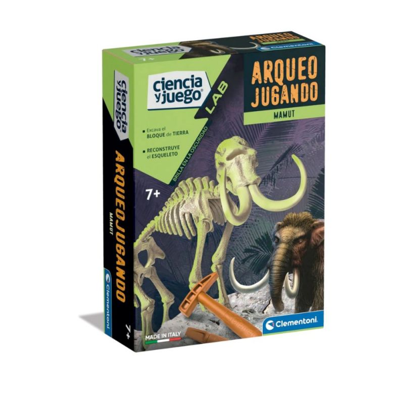 Convertite en un pequeño paleontólogo con el kit Arqueojugando Mamut Fosforescente de Clementoni.