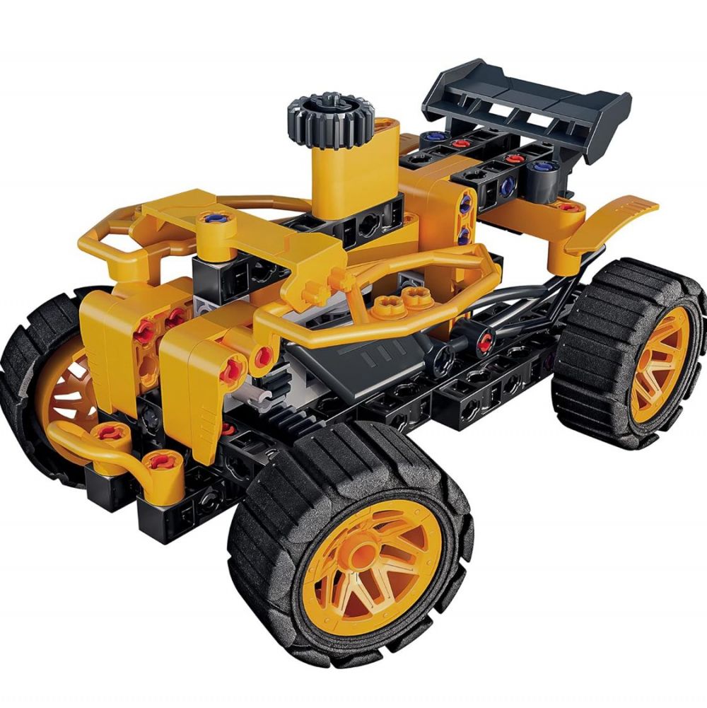 • El juego de construcciones contiene más de 90 piezas para construir 2 modelos diferentes con mecanismos de transmisión para construir 2 vehículos diferentes