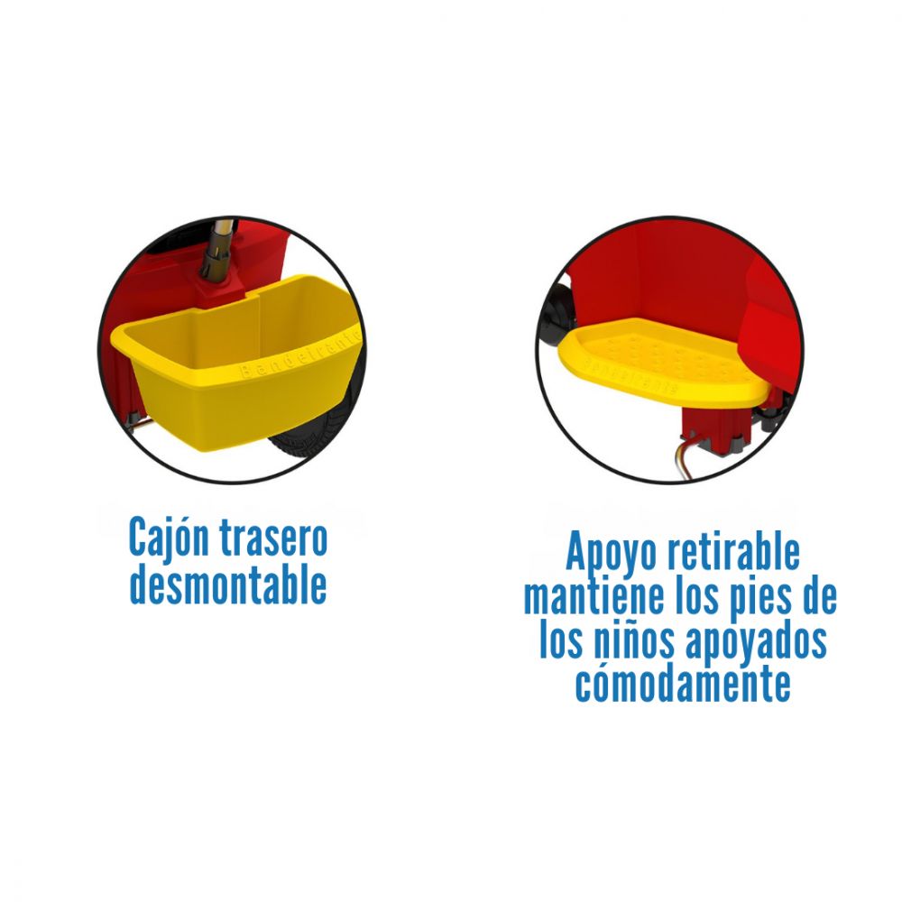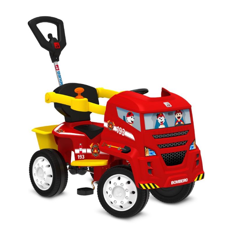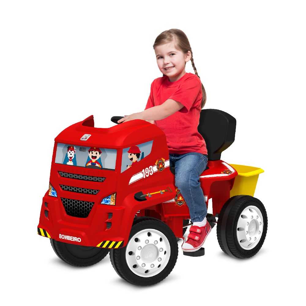 Diseñado para que los pequeños se sientan verdaderos bomberos, su volante con luz LED y chip sonoro simula sirenas y luces, estimulando la imaginación. Además, cuenta con baúl bajo el asiento para llevar pequeños objetos y volquete trasero para aumentar la diversión.