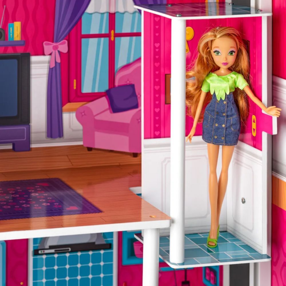 Desde la planta baja hasta el primer piso, las muñecas pueden subir fácilmente gracias a su ascensor funcional.