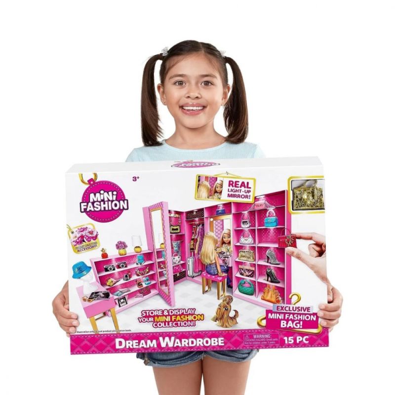 El Mini Brands Mini Armario de Ensueño de Moda de Zuru es el set perfecto para los amantes de las muñecas y la moda. Con más de 25 espacios de almacenamiento, los niños pueden organizar accesorios, bolsos y prendas de sus muñecas, fomentando la creatividad y el juego organizado.