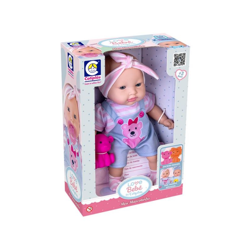 Muñeca de la línea Love Bebé de Cotiplás, ideal para niños desde 3 años. La muñeca viene acompañada de una mascota de vinilo y está hecha con material atóxico y suave al tacto. Su diseño encantador y delicado permite horas de juego, cariño e imaginación, fomentando el juego simbólico y la empatía en los niños.