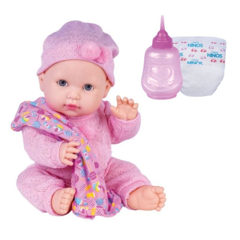 - Accesorios incluidos: Viene con todo lo necesario para el cuidado: un biberón, un pañal y una suave mantita para abrigarla.