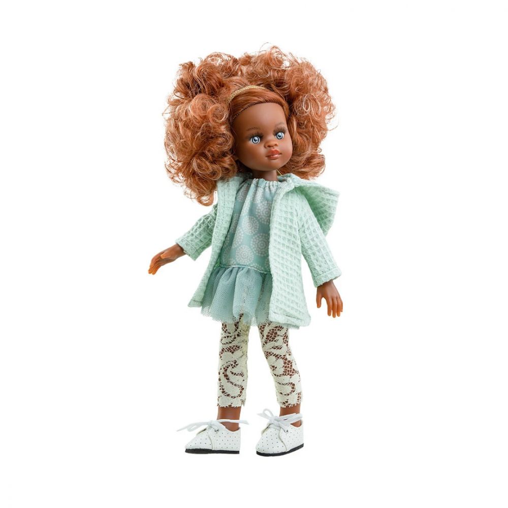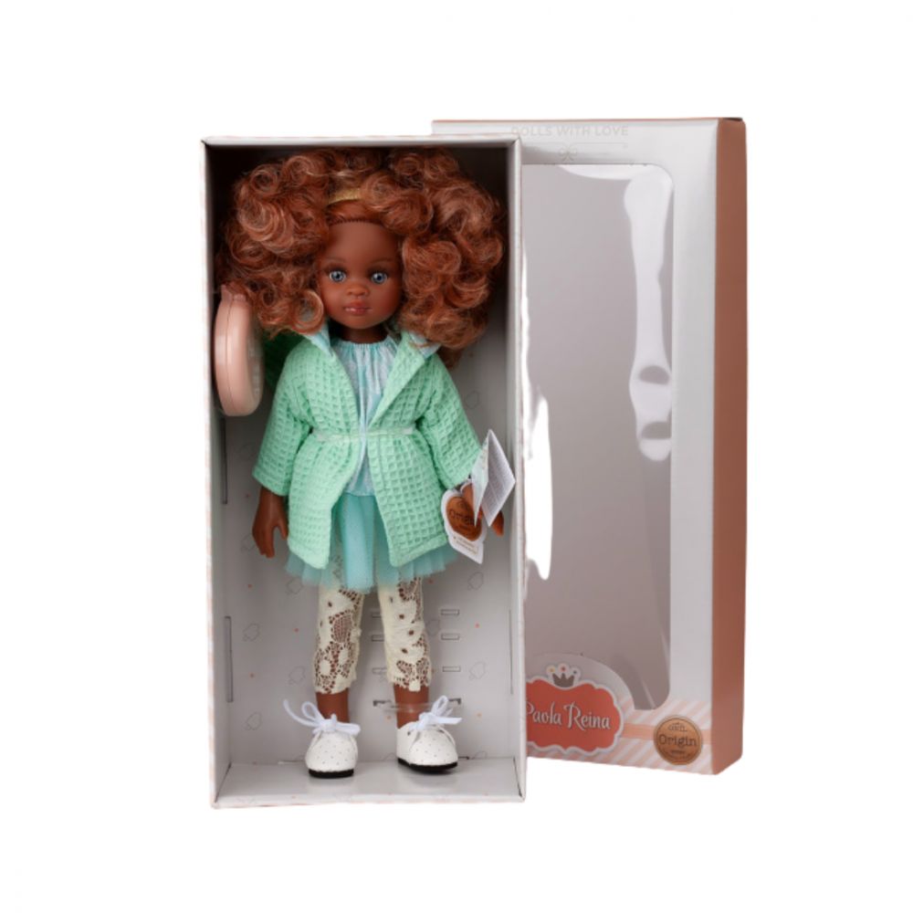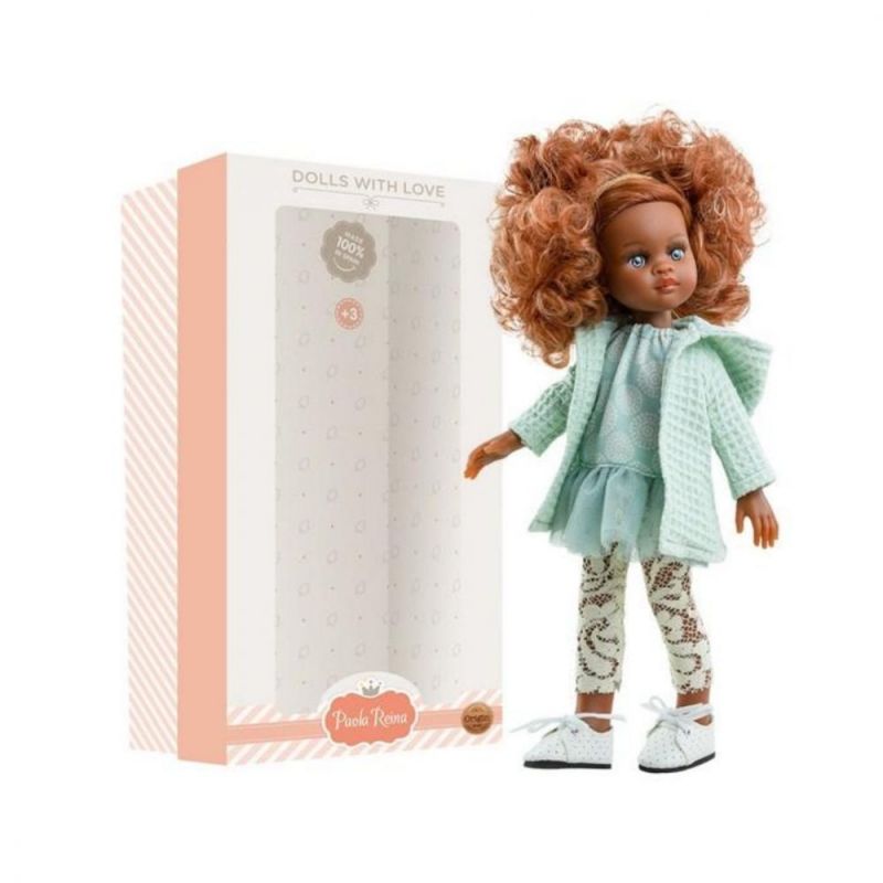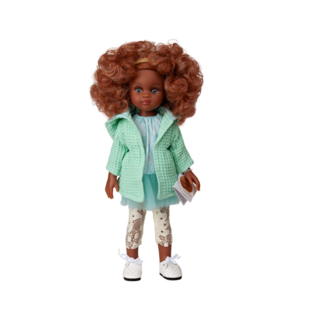 La muñeca Nora de Paola Reina es una obra de arte de 32 cm hecha completamente de vinilo de alta calidad. Su piel morena, su ropa contemporánea y su expresión tan delicada la convierten en una muñeca verdaderamente especial.
