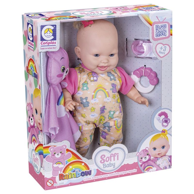 Con su estilo único y sus accesorios adorables, la Baby Soffi Rainbow es perfecta para acompañar a los pequeños en sus momentos de juego y creatividad. ¡Un lanzamiento especial de Cotiplás que encantará a todos!