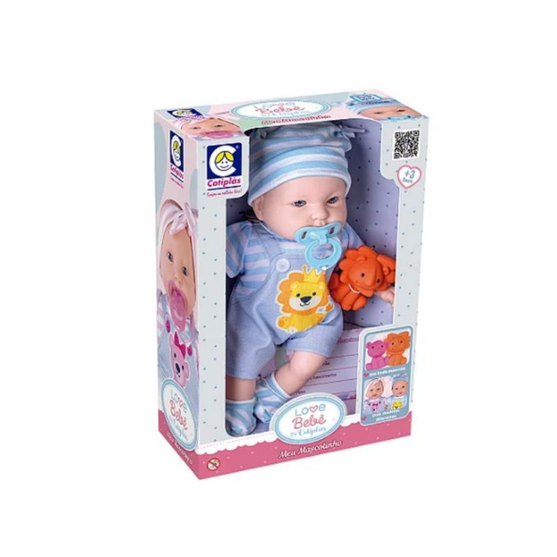 Muñeco de la línea Love Bebé de Cotiplás diseñado para niños desde 3 años. El muñeco viene acompañado de un animalito de vinilo y una chupeta, fabricado en vinilo suave y atóxico. Su tacto es delicado, ideal para abrazar y cuidar, fomentando el juego simbólico y la imaginación.
