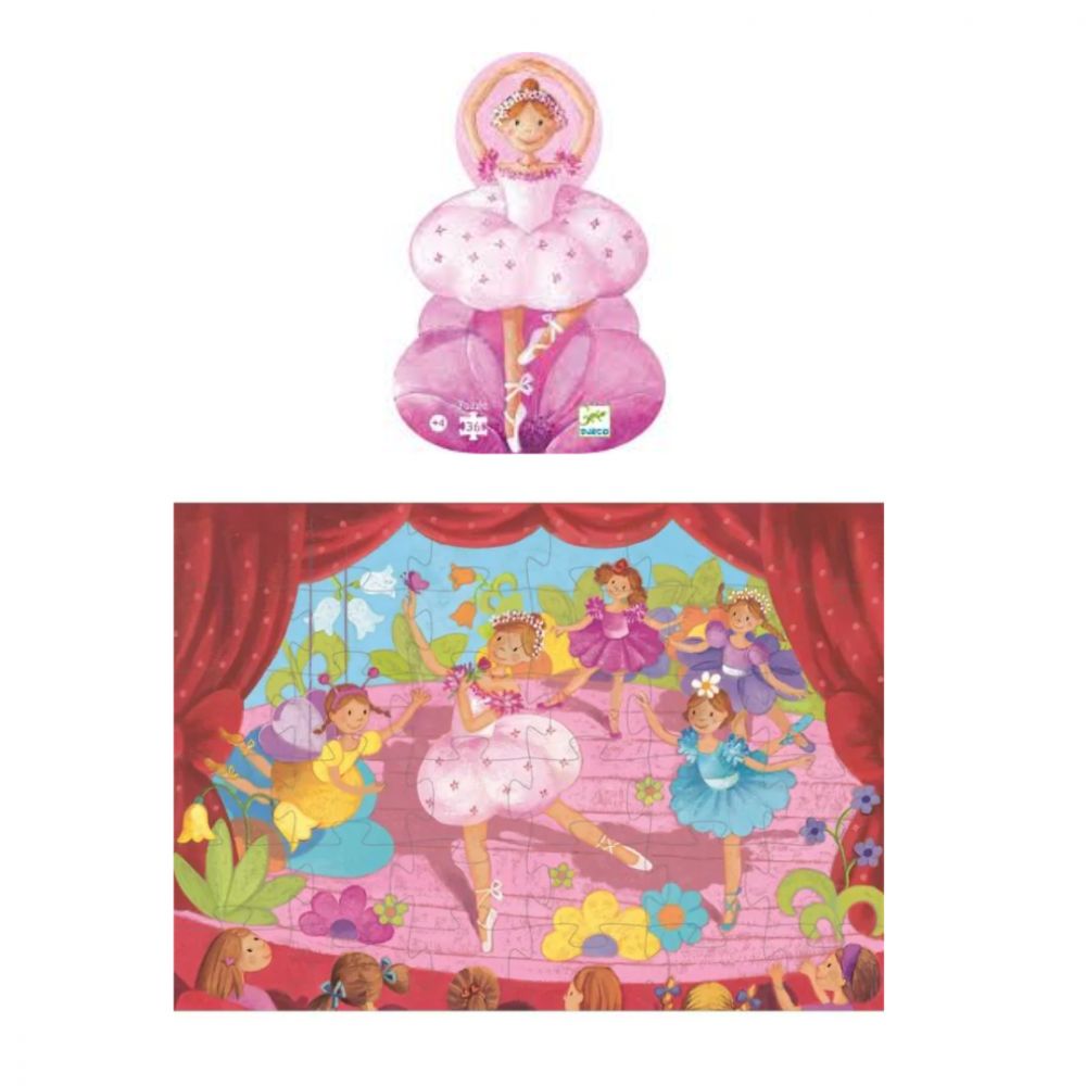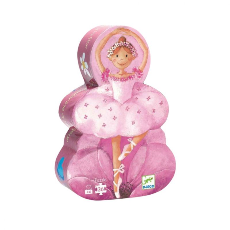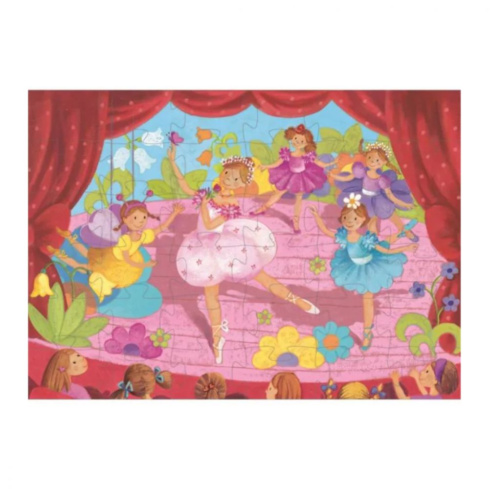Puzzle de 24 piezas con diseño de una bailarina y flores. Características: Piezas de gran tamaño para facilitar el agarre, diseño colorido y atractivo, ideal para desarrollar la motricidad fina y la coordinación ojo-mano.