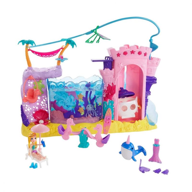 ¡Prepárate para una aventura en el agua con Polly Pocket™! El set Aventuras de Sirena cuenta con una muñeca Polly™ de 8 cm y actividades súper divertidas con temática acuática. Las niñas podrán llenar la zona del acuario con agua (de la llave o mineral) y utilizar la tabla de buceo para activar y mover el agua del tanque. Las niñas también podrán poner a la muñeca Polly™ en el tanque con su esnórkel y aletas, o en su tabla de surf para montar las "olas". ¡Las medusas y los delfines del tanque también se mueven! También hay un submarino que sale del castillo de arena rosa y cuya parte superior púrpura se abre para colocar a la muñeca Polly™ en su interior. ¡Hay muchas cosas por ver y hacer! La muñeca Polly™ también puede andar en tirolesa, deslizarse por la resbaladilla, montar el sube y baja de caballito de mar, descubrir una perla en la almeja, jugar con un amigo narval, balancearse en el columpio de caballito de mar o relajarse en la hamaca o el sillón. Los accesorios incluyen un esnórkel y aletas, una tabla de surf, un vestido de sirena, zapatos y un medallón. Los colores y las decoraciones pueden variar. La muñeca no se puede mantener de pie por sí sola. Excelente regalo para niñas de 4 años en adelante.