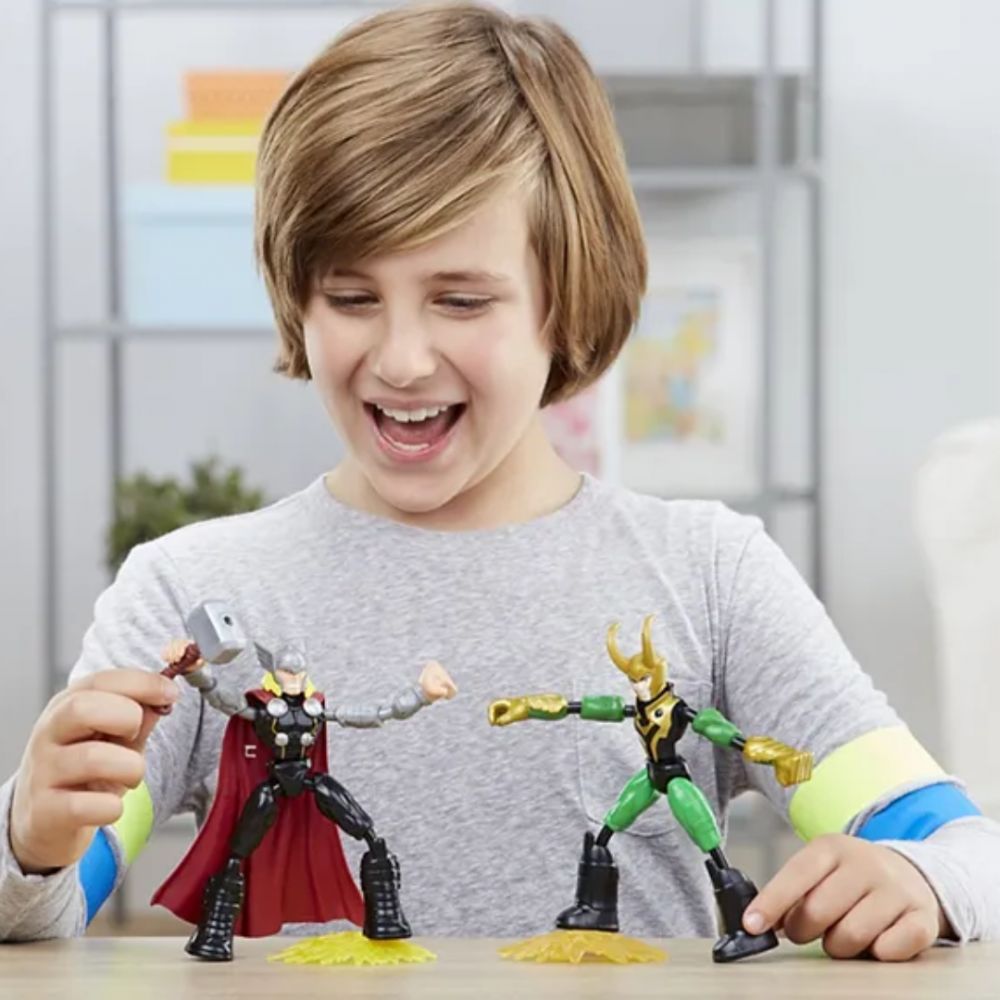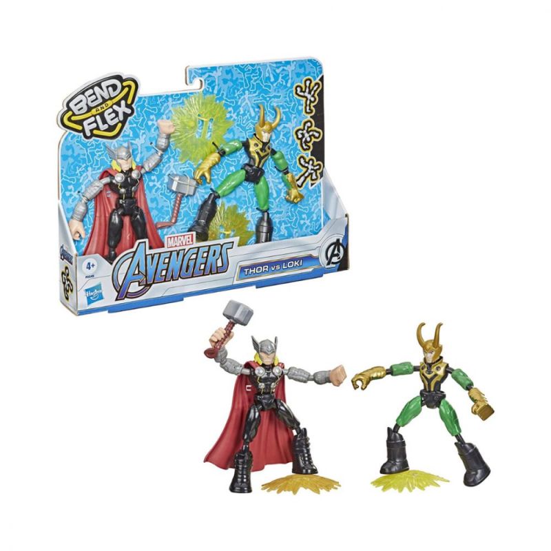 • ¡El heroico Thor y el malvado Loki se enfrentan en una batalla por el destino del universo! ¡Tuerce! ¡Gira! ¡Flexiona tu poder! Ahora puedes doblar, flexionar y jugar con tus superhéroes favoritos de Avengers con estas super ágiles figuras Avengers Bend and Flex. Colecciona estos personajes inspirados en el Universo Avengers (se venden por separado). Estas figuras estilizadas de superhéroes tienen brazos y piernas flexibles que se pueden doblar y mantener en su lugar para lograr una pose perfecta. Despliega estas figuras Bend and Flex en acciones dramáticas y poses heroicas o juguetonas.